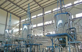 空氣通過(guò)過(guò)濾器和加熱器,進(jìn)入干燥塔頂部的空氣分配器,然后呈螺旋狀均勻進(jìn)入干燥室。料液由料液和熱空氣并流接觸,水份迅速蒸發(fā),在極短的時(shí)間內(nèi)干燥為成品...